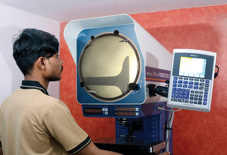 For quality assurance, for inspection we have Mitutoyo Made profile projector, Roughness Tester and Digital Air Gauge, Height Gauge, Hardness Tester, etc. high end tech machines.